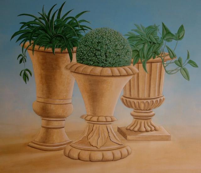Vasques et plantes en Trompe l'oeil destinés au Theatre ( 0,80 cm sur 1,00 mètre)